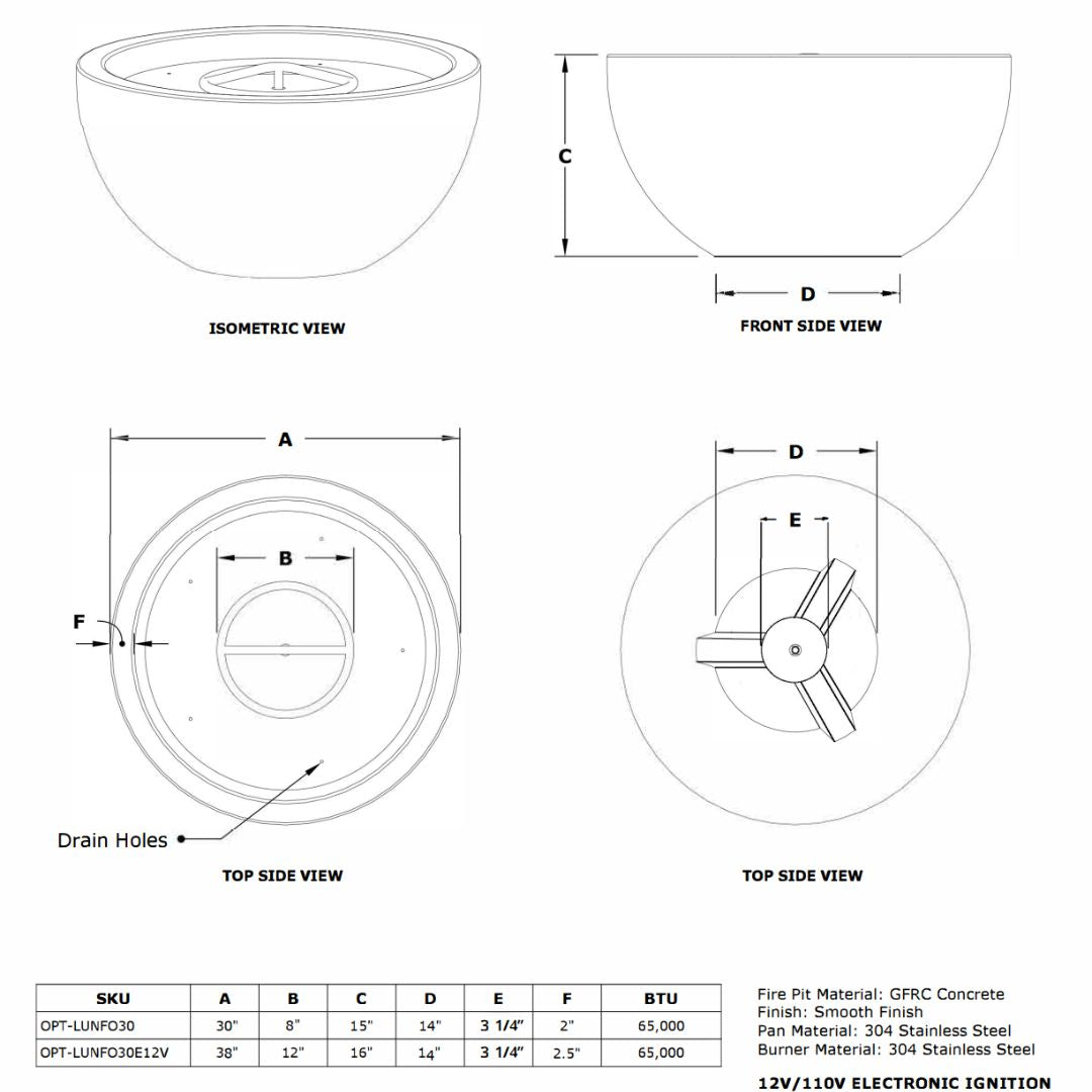 - Dimensions: Upper Diameter: 38", Base Diameter: 13", Height: 16.5", Burner: 18".