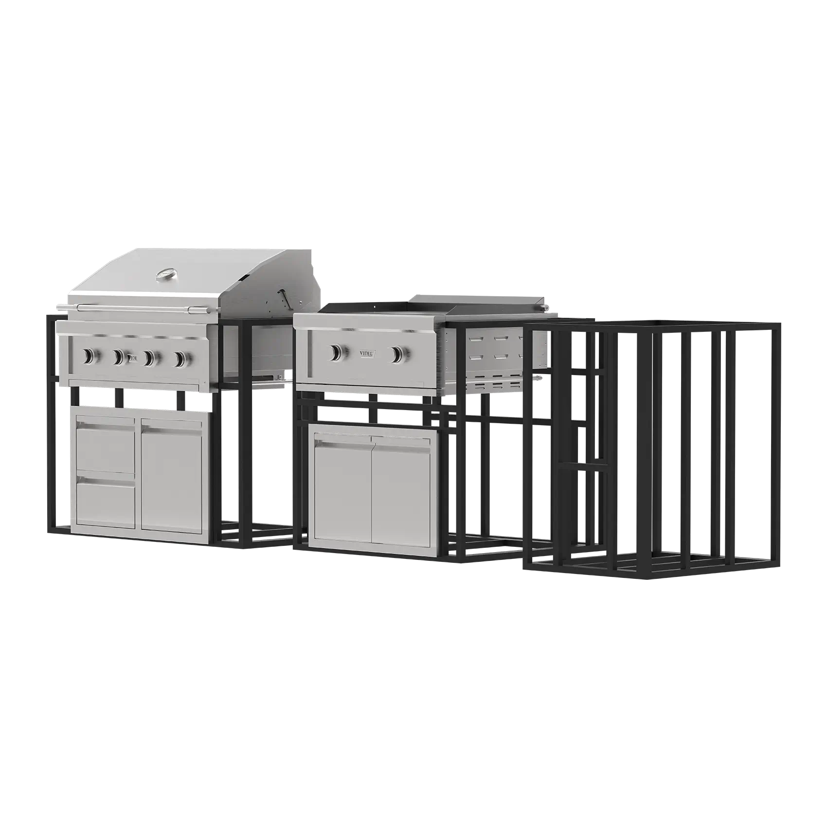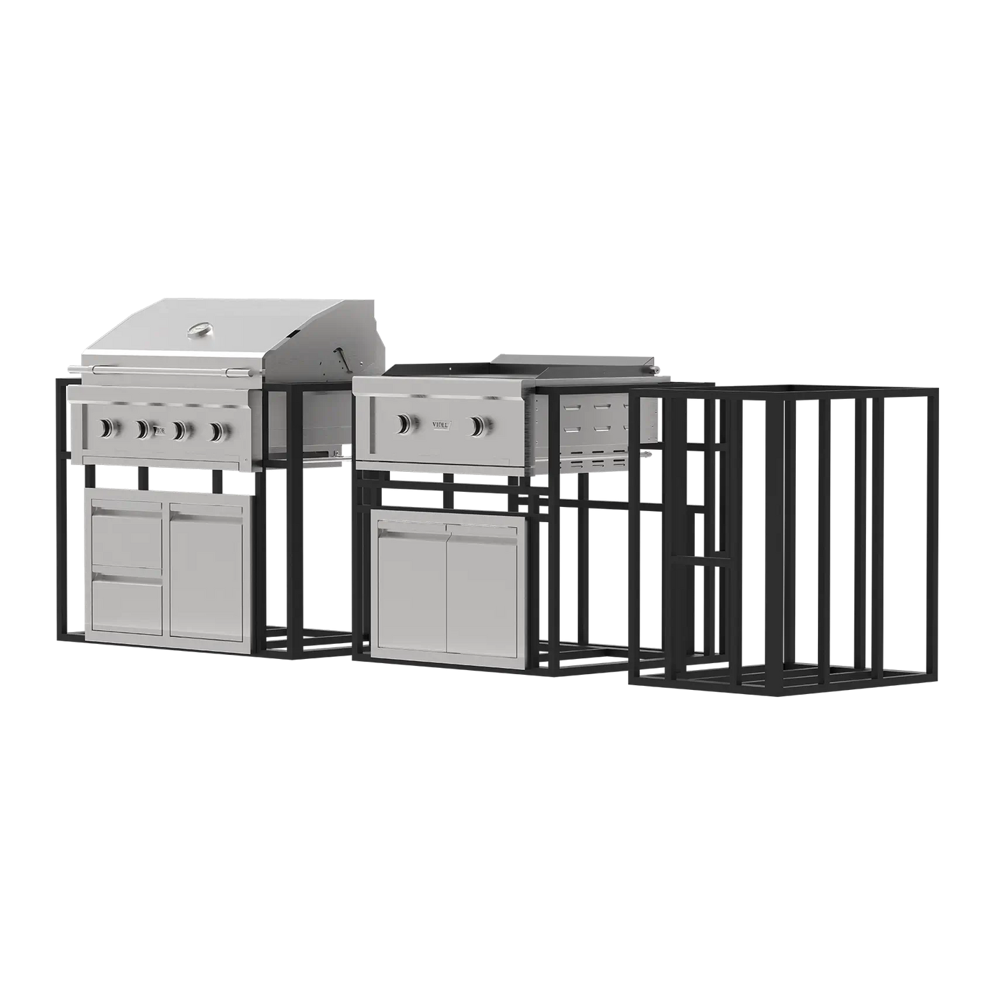 Includes 30” double doors and 36” combo doors & drawers, providing effortless organization and easy access to your grilling essentials. -