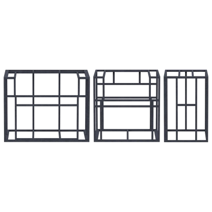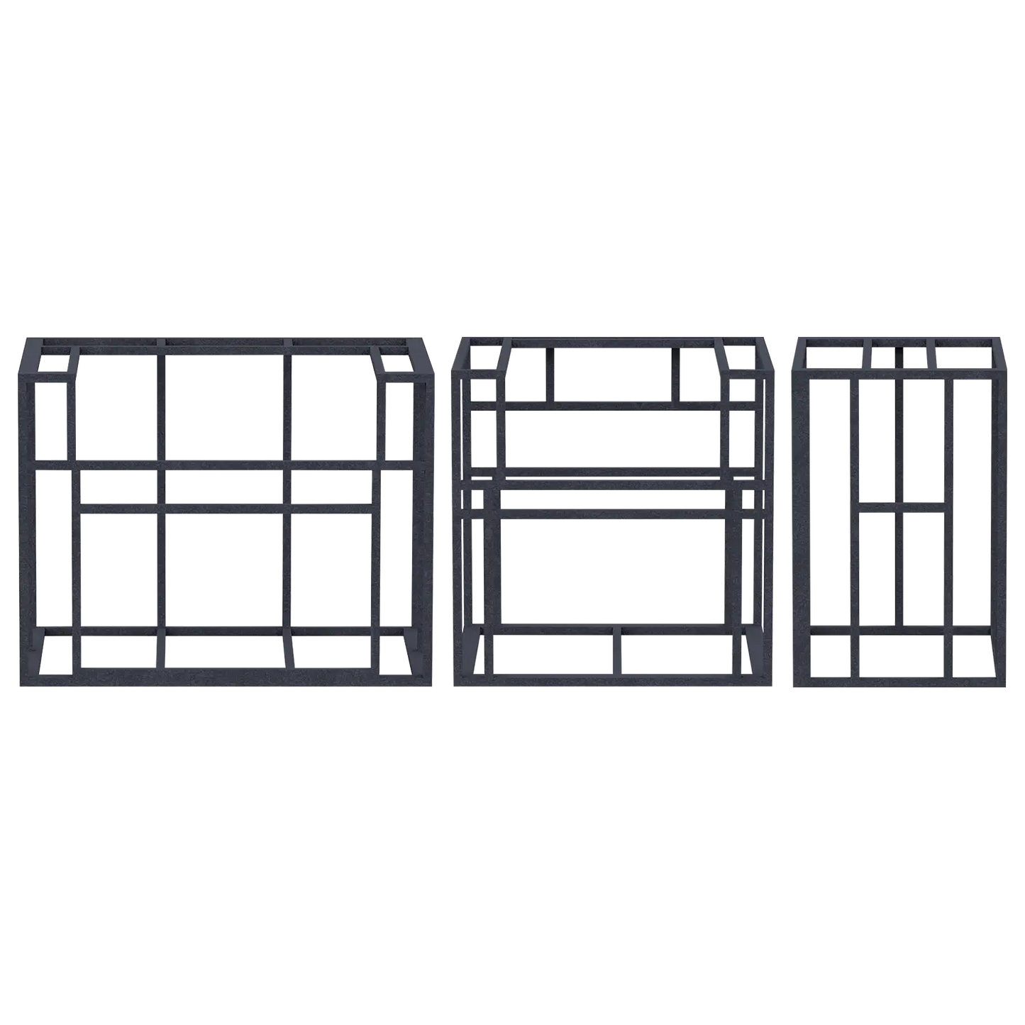 The kit comprises 48”, 36”, and 24” knock-down island frames, allowing for flexible configuration and easy assembly. -