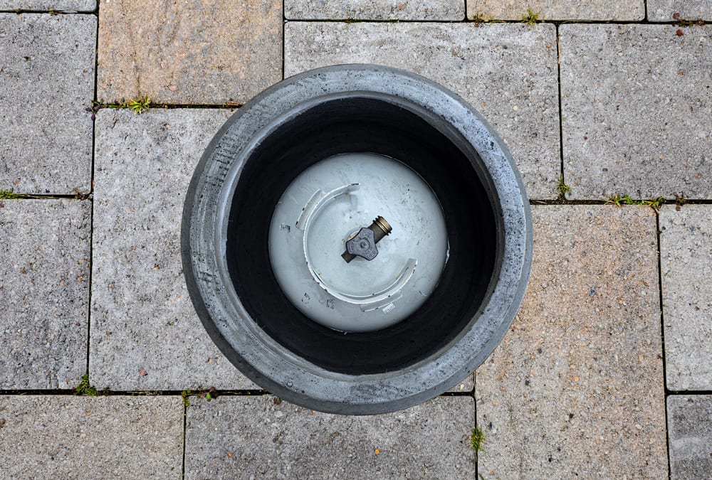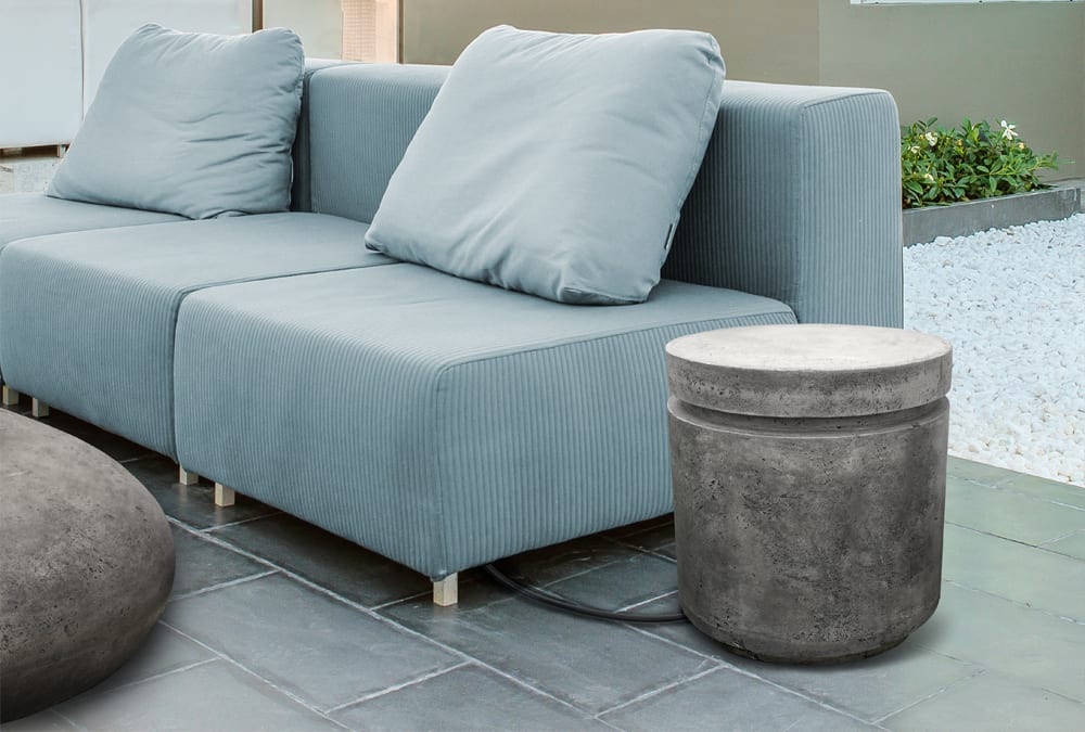 The Prism Hardscapes Mod Propane Tank Enclosure not only provides a chic solution to house your Fire Feature's Propane Tank but also serves as an attractive end table.