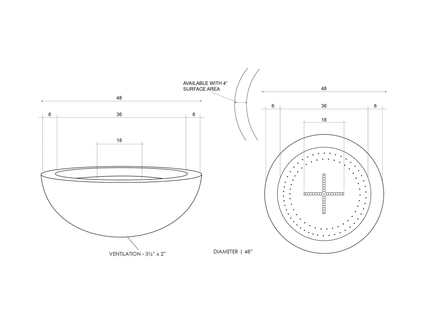 • 48″D / 17″H