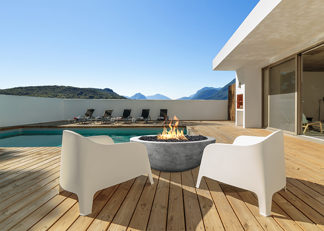 • Crafted from Glass Fiber Reinforced Cement, this fire pit is not only beautiful but also durable, capable of withstanding high temperatures and the harshest weather conditions.