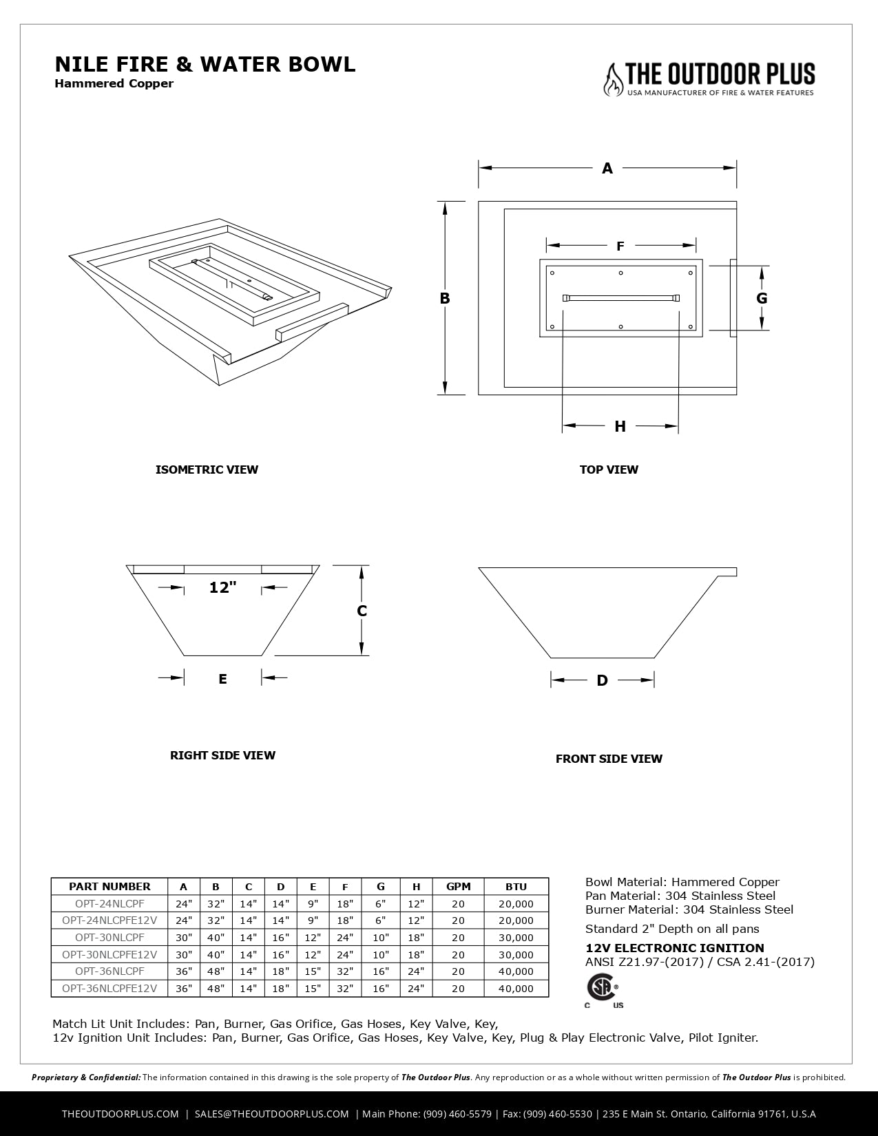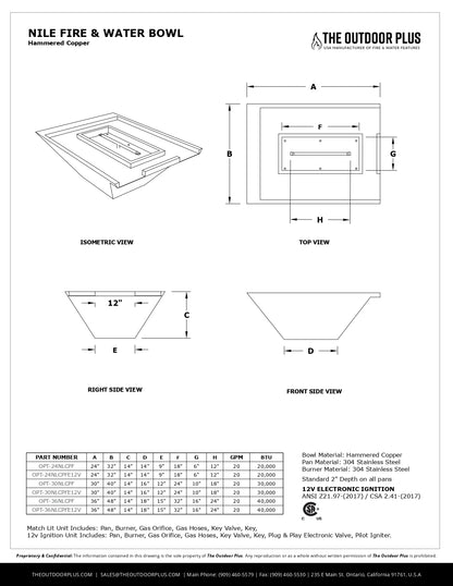 Introducing the OPT-30NLCPF Nile 40 Inch Copper Match Lit Fire and Water Bowl from The Outdoor Plus.